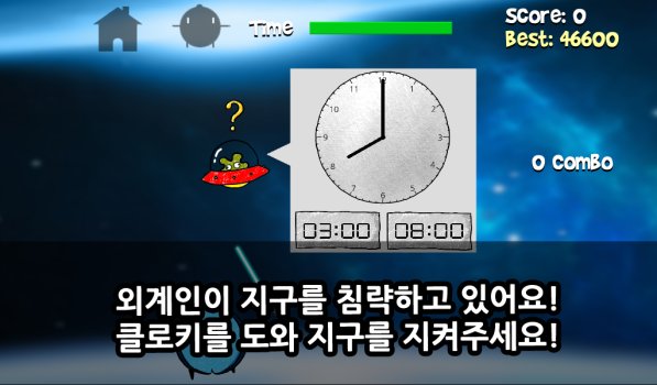 시간을 맞춰 외계인의 침공으로부터 지구를 지켜주세요.