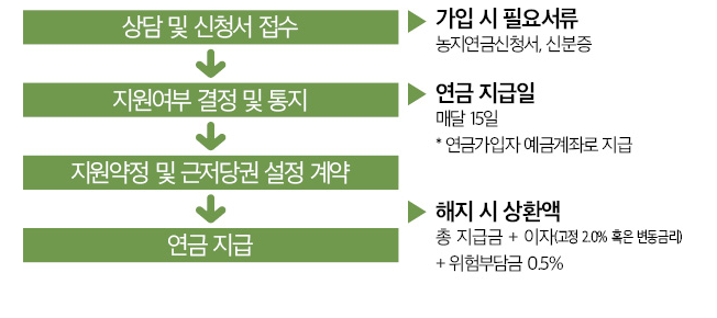 - 심사 결과 승인이 나면, 한국농어촌공사와 연금 지급 약정 및 농지 근저당권 설정 계약을 체결합니다.