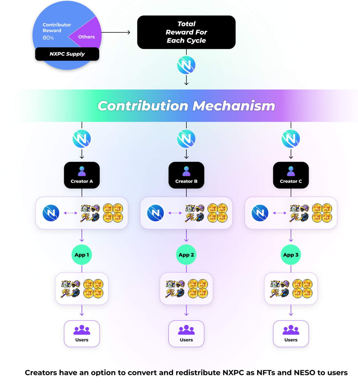 기여 보상 : 개발자는 애플리케이션 성능 지표와 NFT 유틸리티 확장에 있어서 애플리케이션의 효과에 따라 주기적인 NXPC 보상을 받을 수 있습니다.
