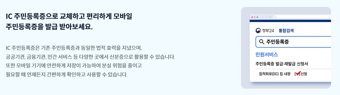 또한, 스마트폰에 저장되기 때문에 실물 신분증을 따로 들고 다닐 필요가 없고, 분실 시에도 간편하게 재발급할 수 있어 주민센터를 방문해야 하는 불편함도 줄었습니다.