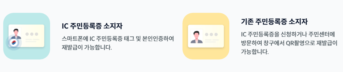 - 스마트폰에 IC 주민등록증 태그하여 본인인증 후 재발급