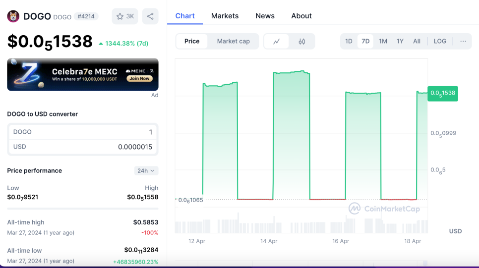 정체를 밝히지 않은 DOGO의 발행자는 매일 $7만 (약 1억원) 정도를