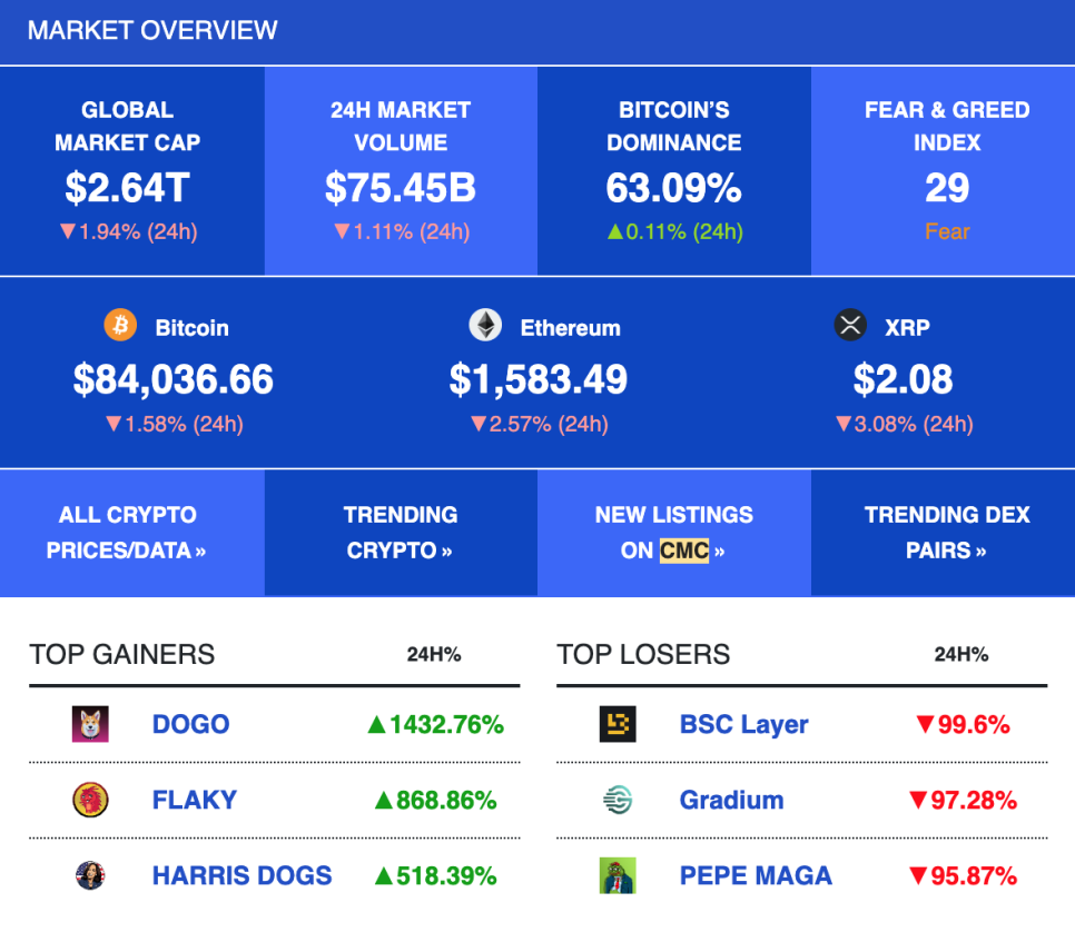 아래는 코인마켓캡에서 발행하는 Daily Market Overview입니다.