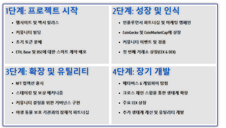 커뮤니티 확대 → 카드 출시 → NFT 및 staking → 메타버스 및 GameFi 확장 예정