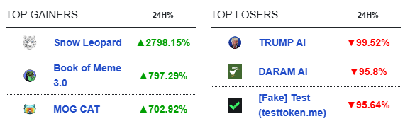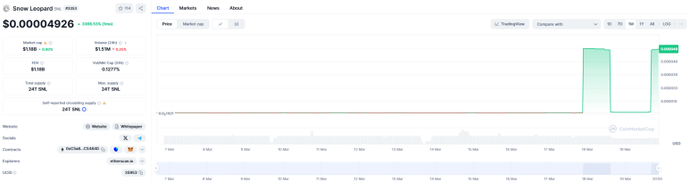 오늘의 떡상 프로젝트는 Snow Leopard입니다. 24시간 동안 2800%의 상승률을 기록했습니다.