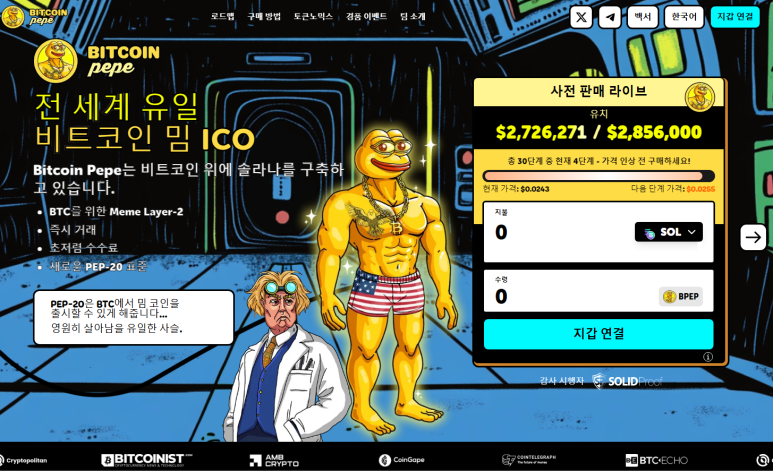 비트코인 페페(BPEP)는 비트코인의 보안성과 신뢰성을 기반으로 한 L2 (레이어 2) 솔루션입니다. 주목할 만한 점은 기존 비트코인 네트워크의 유동성과 보안을 그대로 유지하면서도 솔라나(Solana)와 같은 확장성을 제공한다는 사실입니다. 이는 밈코인의 거래를 원활하게 만들며, BTC 블록체인의 활용도를 더욱 확장하는데 기여할 것으로 예상됩니다.