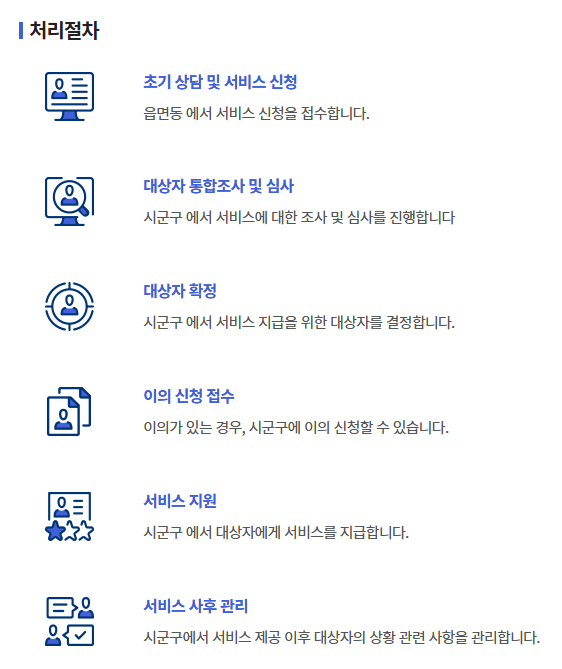 - 거주지 관할 읍·면·동 주민센터를 방문하거나, 복지로(www.bokjiro.go.kr) 홈페이지 온라인 복지포털을 통해 신청할 수 있습니다.