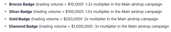 TGE 전까지 사용자의 거래량을 기반으로 에어드랍이 진행될 예정이다.