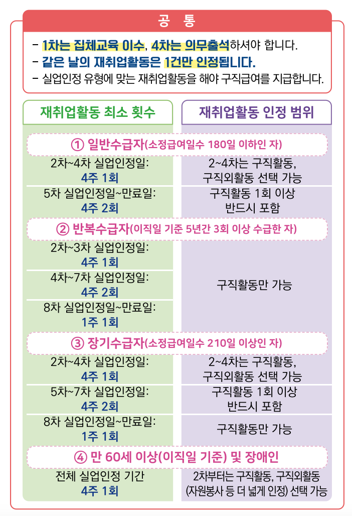 - 2차~4차는 구직 활동 또는 구직 외 활동을 선택해 4주 1회 이상 재취업 행위