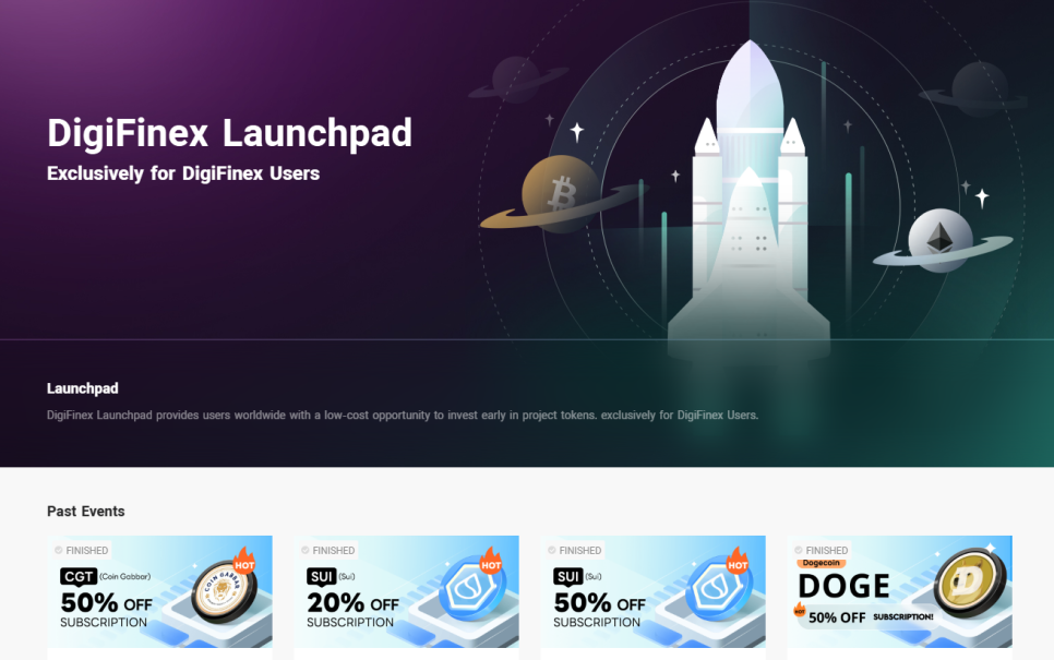 DigiFinex 거래소는 사용자에게만 제공되는 신규 코인 Launchpad 플랫폼을 운영하고 있습니다. 이는 거래소 사용자가 할인 가격으로 시규 코인에 초기 투자를 할 수 있는 기회가 제공된다는 의미입니다. 한 예로, 2023년에 SUI 토큰을 20~50% 할인 가격으로 구독할 수 있는 기회가 제공된 바 있습니다.