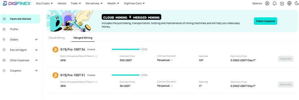 거래소는 클라우드 마이닝 유틸리티를 통해 사용자가 비트코인 채굴 장비의 구매, 호스팅, 유지보수를 신경쓰지 않으면서 마이닝 그룹에 가입해 채굴에 참여하는 방법을 제공합니다.