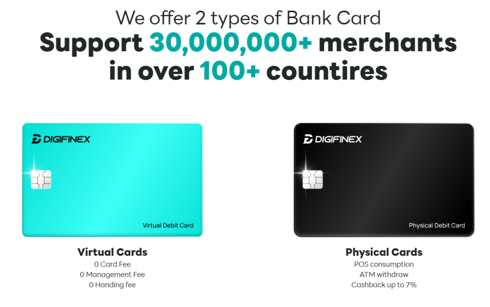 거래소는 가상카드와 실물카드, 두 가지 카드 서비스를 제공하고 있으며, 이를 통해 전 세계 어디서나 암호화폐 잔액을 사용할 수 있습니다. (단, 북한 등 일부 국가에서는 사용이 제한될 수 있습니다.)