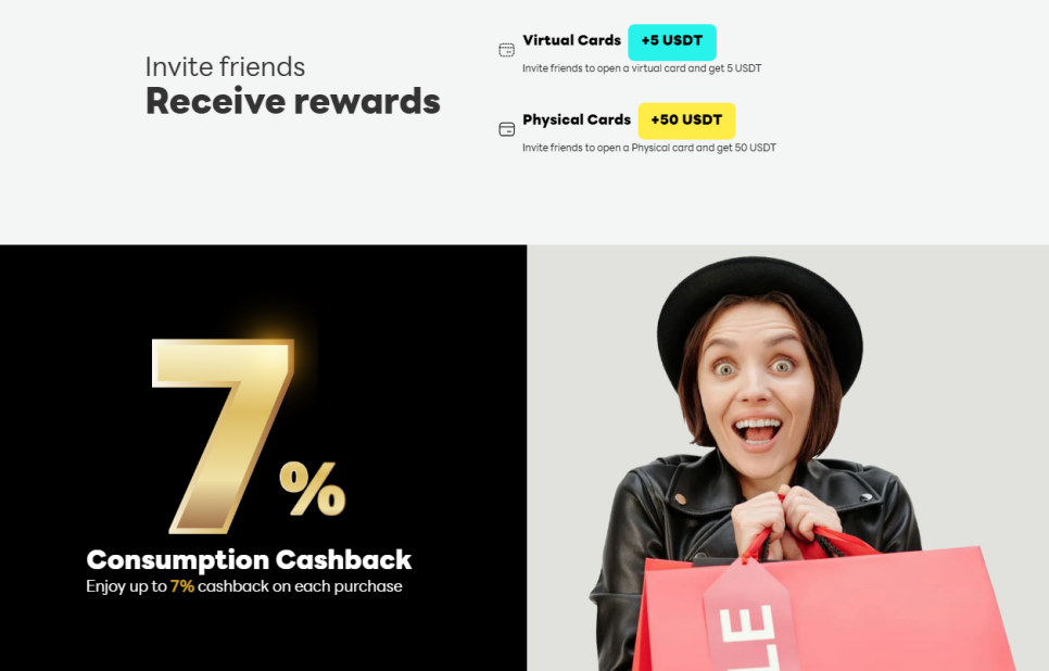 또한 가상카드와 실물카드는 각각 친구초대마다 각각 +5USDT, +50USDT를 보상으로 받을 수 있으므로 체크해 보시면 좋을 듯 합니다.