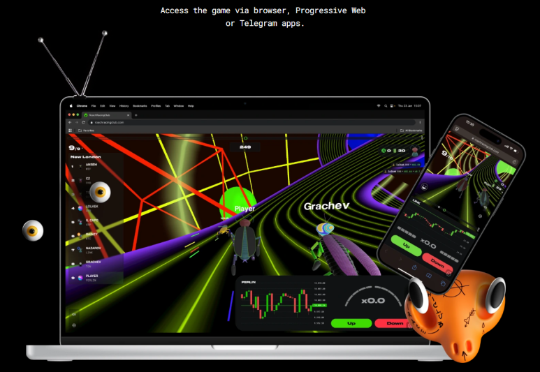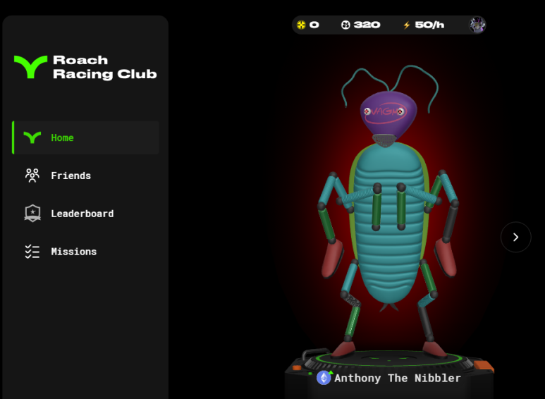 프로젝트 이름은 Roach Racing Club이며 NFT와 게임파이를 접목한 레이싱 기반 거래 게임입니다. 유저가 실시간으로 코인의 가격을 예측하며 경쟁하는 형태를 지녔습니다. 선물 거래하듯 단타를 치고 바퀴벌레를 부스팅해서 경기에서 우승할 수 있습니다.