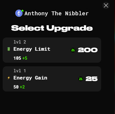하루에 사용할 수 있는 에너지가 정해져 있는데 시간 당 50씩 채워지고 에너지 리밋 또는 채워지는 속도를 MTGN으로 업그레이드 할 수 있습니다.