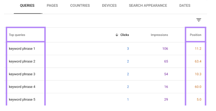 여러분의 콘텐츠가 키워드에 대해 순위가 매겨진다면, 그것은 Google이 귀하의 콘텐츠를 이미 해당 키워드와 관련이 있다고 보고 있다는 지표입니다. Google Search Console을 이용해 이미 순위가 매겨진 키워드 구문을 찾을 수 있습니다.