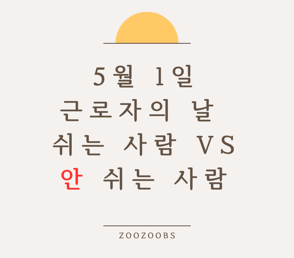 5월 1일 근로자의 날은 법정공휴일이 아닌 법정휴일로, 근로기준법상 근로자(5인 이상 사업장)는 유급으로 쉴 수 있습니다. 공무원, 교사, 우체국, 경찰, 소방, 군인, 대중교통, 병원 등은 정상 출근해야 합니다. 특수고용직(택배, 보험설계사 등)도 정상적으로 근무하게 됩니다. 쉬어야 할 근로자가 근로자의 날 출근했다면 평소보다 150% 법정수당을 지급하거나 보상휴가를 부여해야 합니다. 근로자의 날을 앞두고 혼란을 줄이기 위해, 사장님, 인사팀장님은 휴무 기준과 수당 지급 방침을 미리 공지하는 것이 좋습니다. 가까운 미래에는 5월 1일이 모두가 쉬는 즐거운 날이 되었으면 좋겠습니다.
