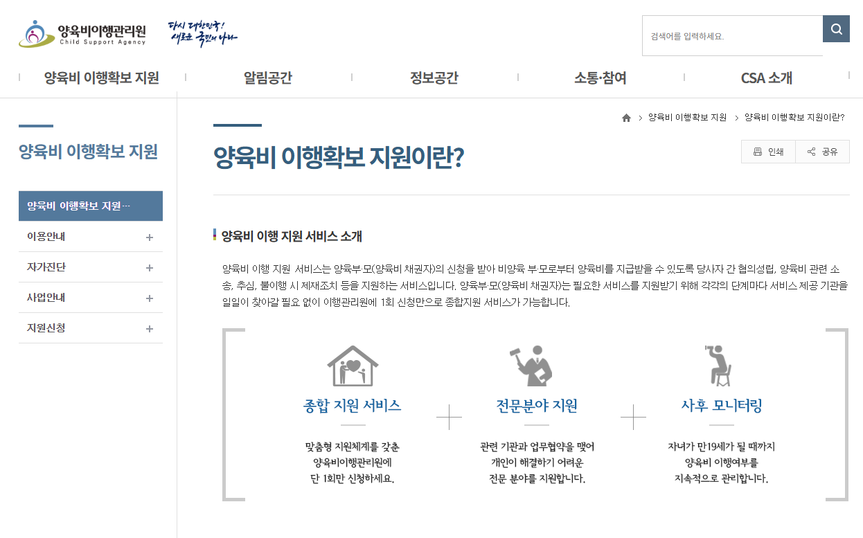 - 양육비이행관리원 공식 홈페이지 온라인 상담