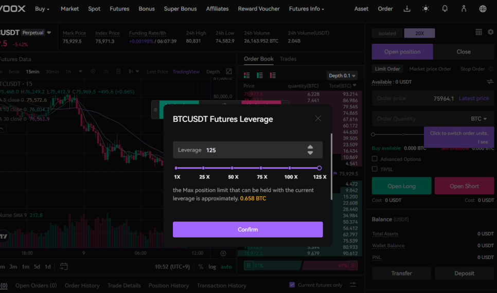 현물(SPOT) 및 선물(Futures) 트레이딩을 포함한 다양한 투자 상품을 제공하고 있으며 선물은 최대 125배 레버리지를 제공하고 있습니다. 큰 수익이 발생할 수도 있으나 예상하지 못한 흐름에 손실이 발생할 수도 있으니 면밀한 검토가 필요합니다.