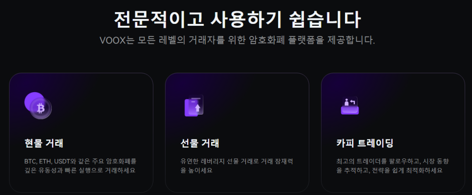 VOOX는 AI 기술을 활용해 개인화된 트레이드 경험을 제공하며, 보안과 사용자 편의성을 강조하는 플랫폼입니다.