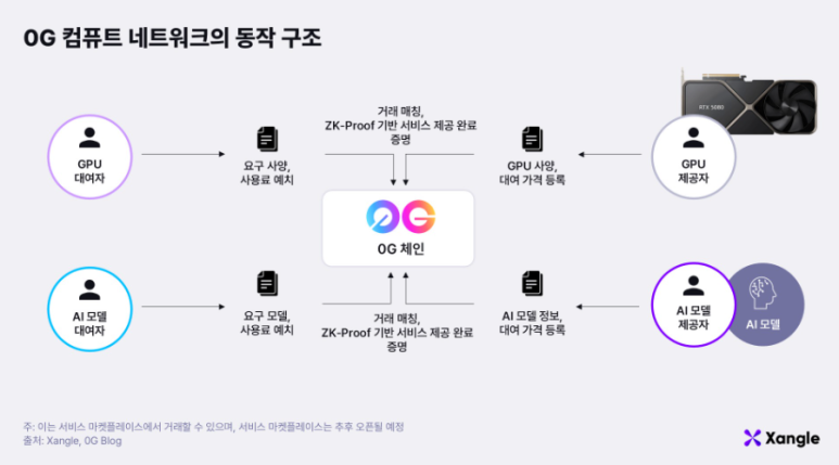 또한 0G 컴퓨트 네트워크는 **탈중앙화된 연산 자원(GPU, CPU 등)**을 공유할 수 있도록 설계된 분산 컴퓨팅 프레임워크로, AI 모델의 학습 및 추론 작업을 수행할 때 전 세계의 유휴 컴퓨팅 파워를 활용할 수 있도록 합니다.