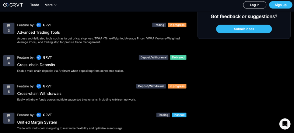 GRVT는 다양한 암호화폐 파생상품과 고급 거래 옵션을 제공합니다.