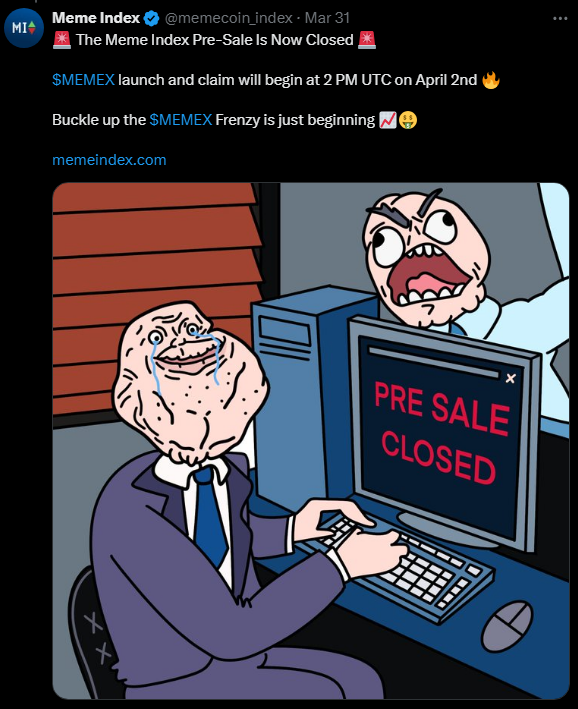 최근 프리세일이 종료되는 Meme Index가 4월 2일 토큰 상장을 앞두고 있습니다.